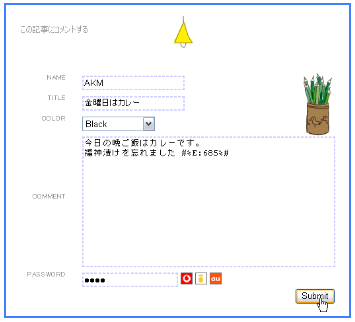 パスワードの記入欄があります。こちらへお好きな数字またはアルファベット(4文字以上が適)を記入していただきますと、投稿後ご自分で編集が可能です。